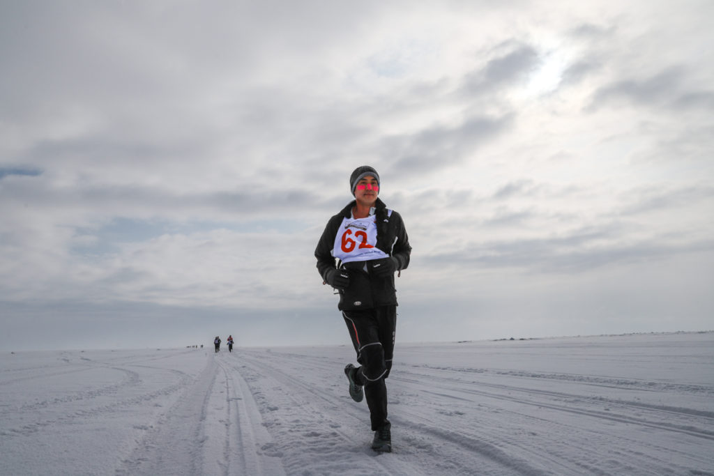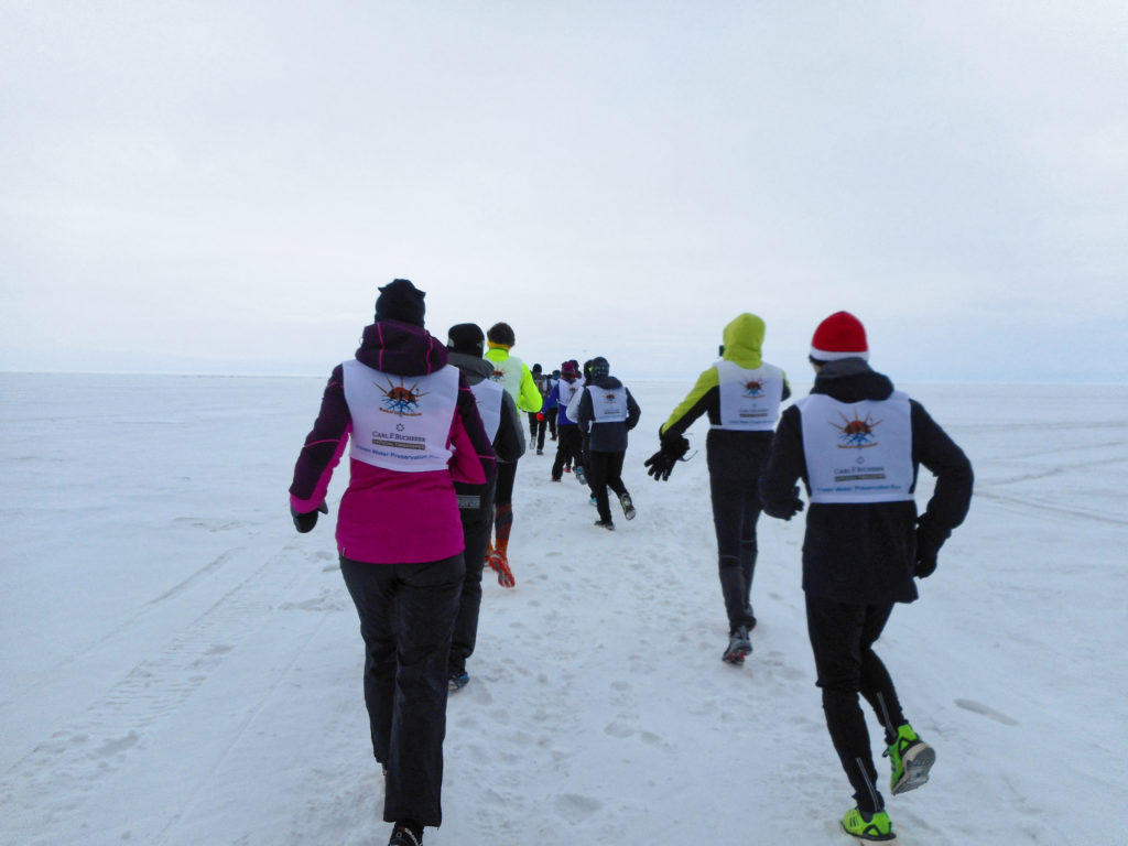 Le BIM peut connaître des conditions très rigoureuses, dignes de la réputation de la Sibérie ! En 2018, contrastant avec le beau temps du départ, le blizzard s’est levé, les rafales atteignant 100km/h, la température chutant à -30 degrés et la visibilité ne dépassant pas 5 mètres. La course a été arrêtée, l’organisation a eu besoin de deux heures pour évacuer tous les coureurs. Des conditions rudes voire particulièrement hostiles conduisent l’organisation à limiter le nombre de participants (environ 130) et à demander une expérience minimum de la course à pied pour valider l’inscription. J’ai rencontré un grand nombre de coureurs d’ultra, mais aussi des marathoniens ‘classiques’ qui couraient pour la première fois sur la glace. Une même motivation : découvrir (ou revisiter pour les nombreuses personnes qui y reviennent) un environnement incroyablement différent, unique et finalement assez magique.
