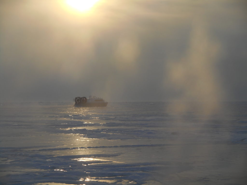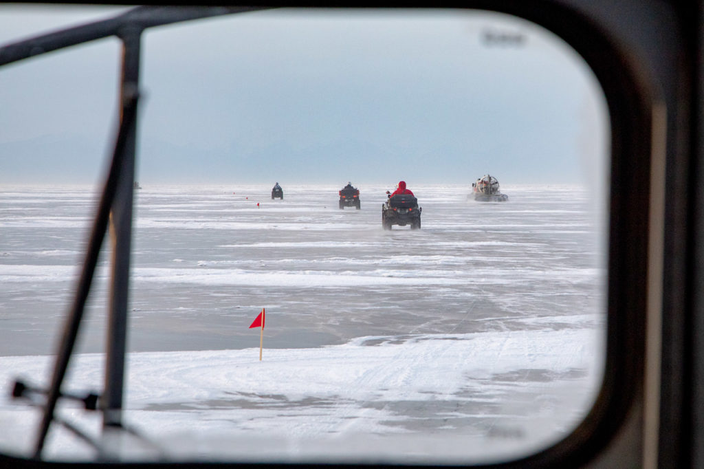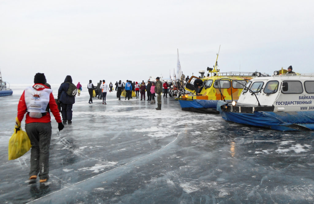 Le jour J, le temps est couvert, la température clémente avec environ -6 degrés, le vent modéré. Des hovercrafts emmènent les coureurs de Listvianka à Tankhoy, sur la ligne de départ. Ils sont chauffés, ce qui évite une exposition inutile au froid, et évoluent la long de la trace ce qui permet d’avoir une première idée du parcours.