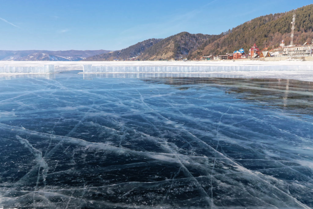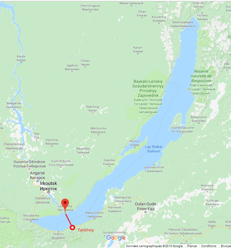 Le bandeau du site et les photos vont capter votre attention : la glace foncée, parfois bleue sous l’effet du soleil, striée de rainures blanches et par endroits couverte de patchs de neige, est éblouissante. Je n’ai pas pu oublier ces images et ai cherché à participer dès que l’occasion s’est présentée. Un bon prétexte pour découvrir le lac Baïkal, le plus grand lac d’eau douce au monde et le plus profond (1642m), l’un des plus transparents (40m) et tout en longueur (636 km de long avec une largeur variant de 24 km à 79 km).