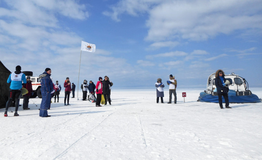 A Tankhoy, les locaux d’un centre dédié à l’étude du lac servent de point de ralliement, pour mettre la dernière main à l’équipement, quitter l’anorak et faire une dernière visite aux (rares) sanitaires. Les concurrents sont ensuite appelés par leur numéro de dossard, un à un, à marcher les quelques mètres qui séparent le centre du lac et de la ligne de départ. Le temps de se conformer au rituel traditionnel pour s’attirer les bonnes grâces des dieux du lac, tout le monde est prêt et le départ est donné.