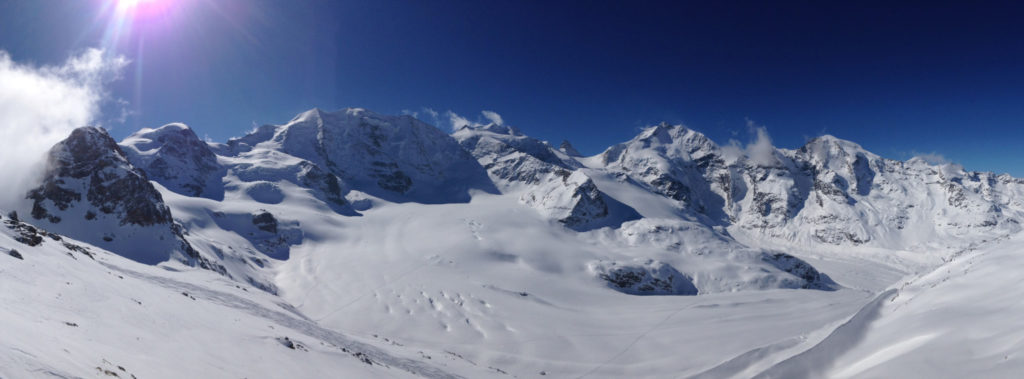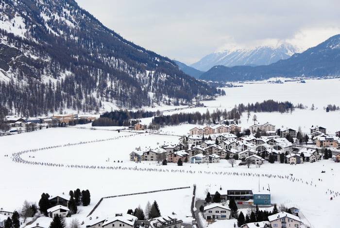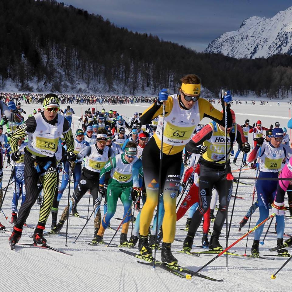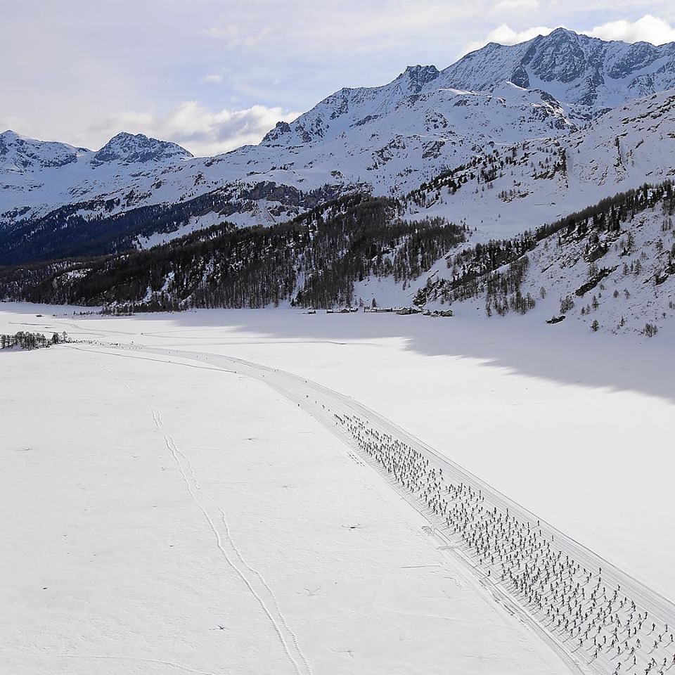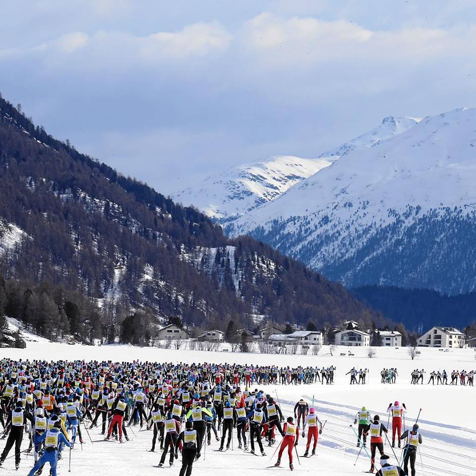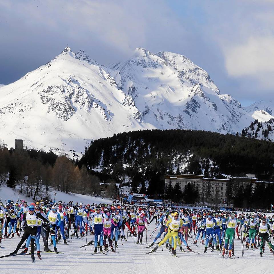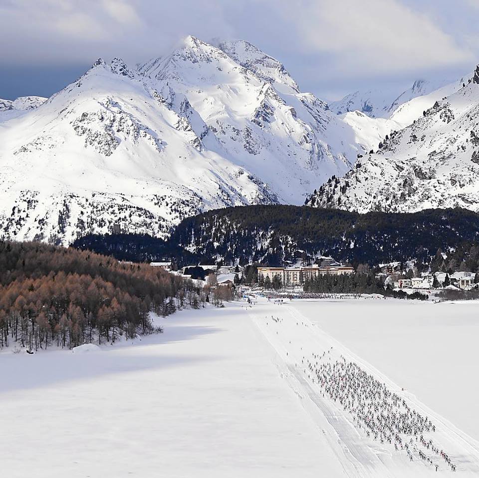 C’est en Engadine, dans le canton des Grisons au sud-est de la Suisse, qu’a lieu la course de ski de fond du circuit Worldloppet. Symboles de cette région, la ville de Saint Moritz et le sommet de la Bernina qui culmine à 4049m et forme, avec le Piz Palu (3905m), un des plus beaux paysages de haute montagne des Alpes. J’en ai fait l’ascension il y a une quinzaine d’années et en garde un souvenir très fort.