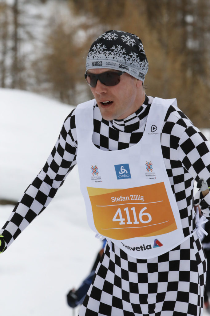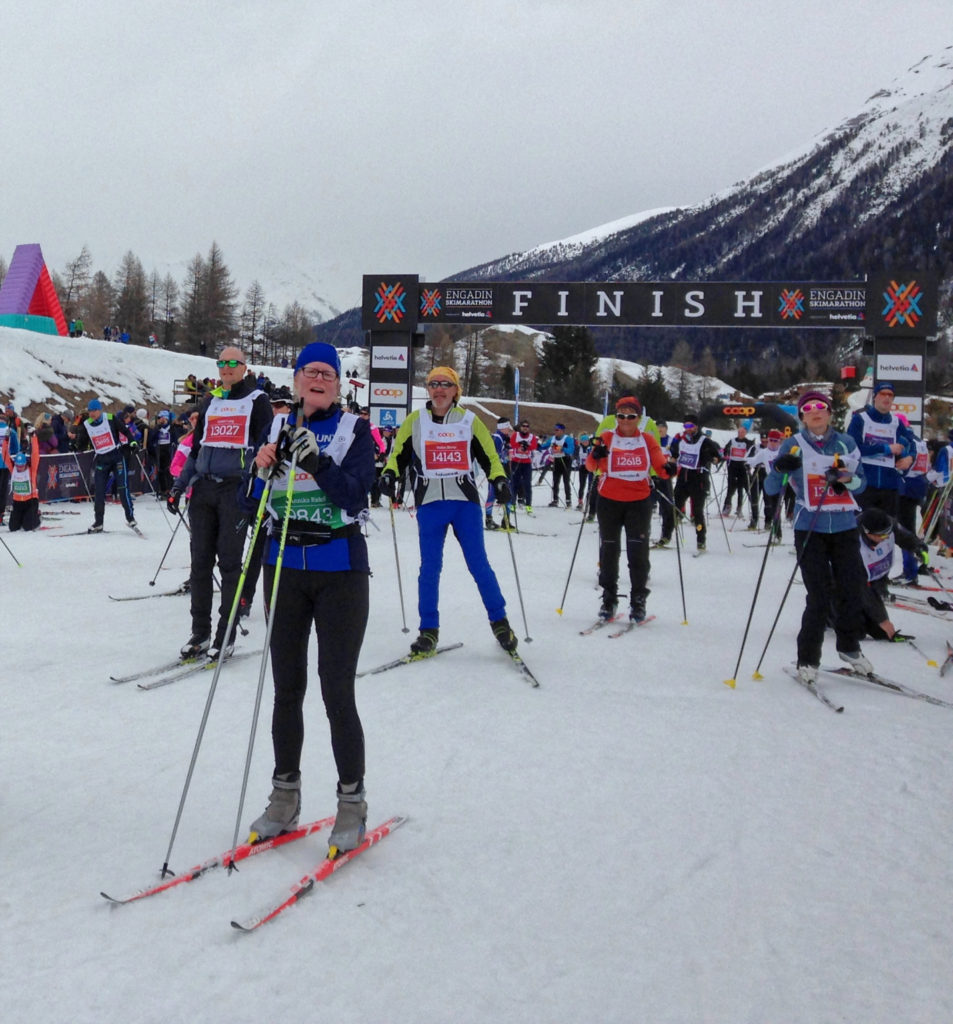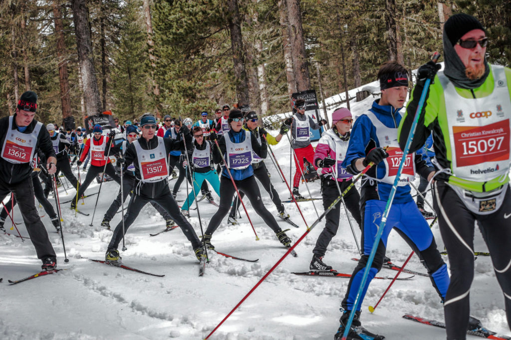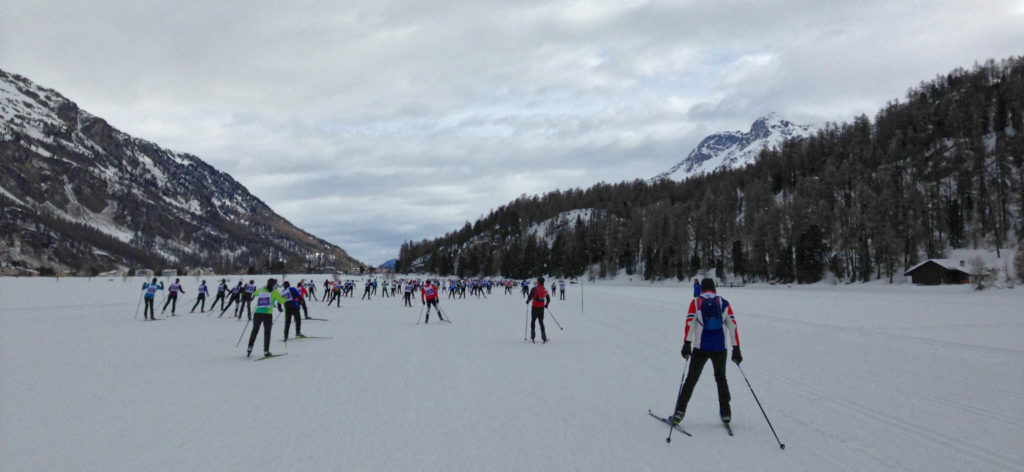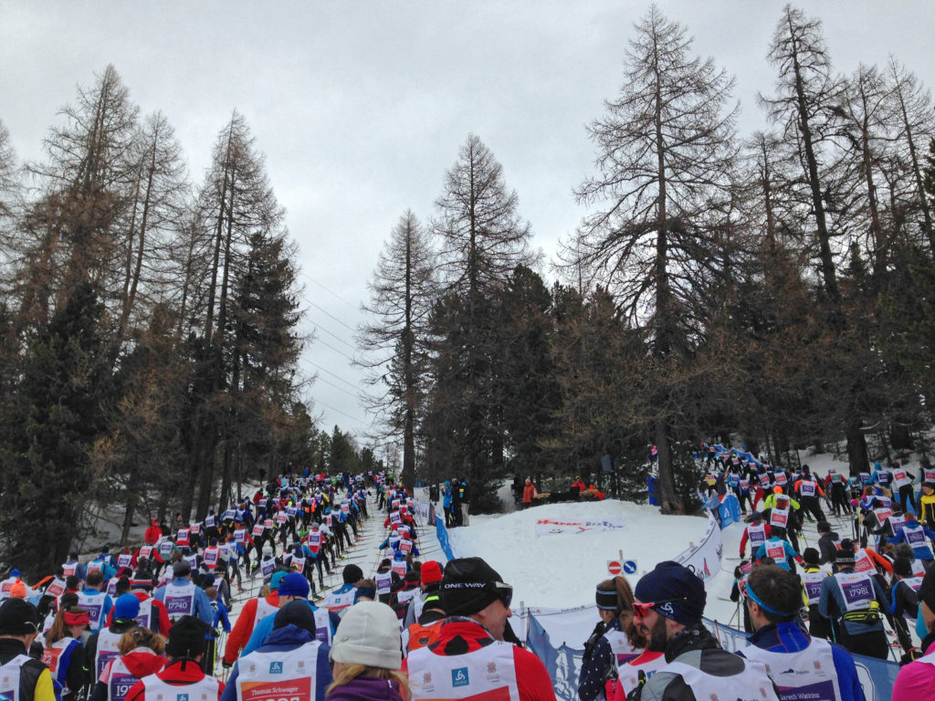 Outre la présence des skieurs Elite, le marathon de l’Engadine a la réputation d’être la plus populaire des courses de ski de fond longue distance avec près de 11000 personnes au départ pour les 42km et 2500 pour le 21km. La particularité de cette course est que marathoniens et semi-marathoniens partent ensemble, tout comme technique classique et skating. Je le constaterai sur la piste, très peu de skieurs en classique au demeurant. Mais en conclusion, énormément de monde sur le parcours! La barrière horaire est très large avec un temps limite de 6h40 pour les 42km.