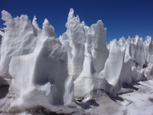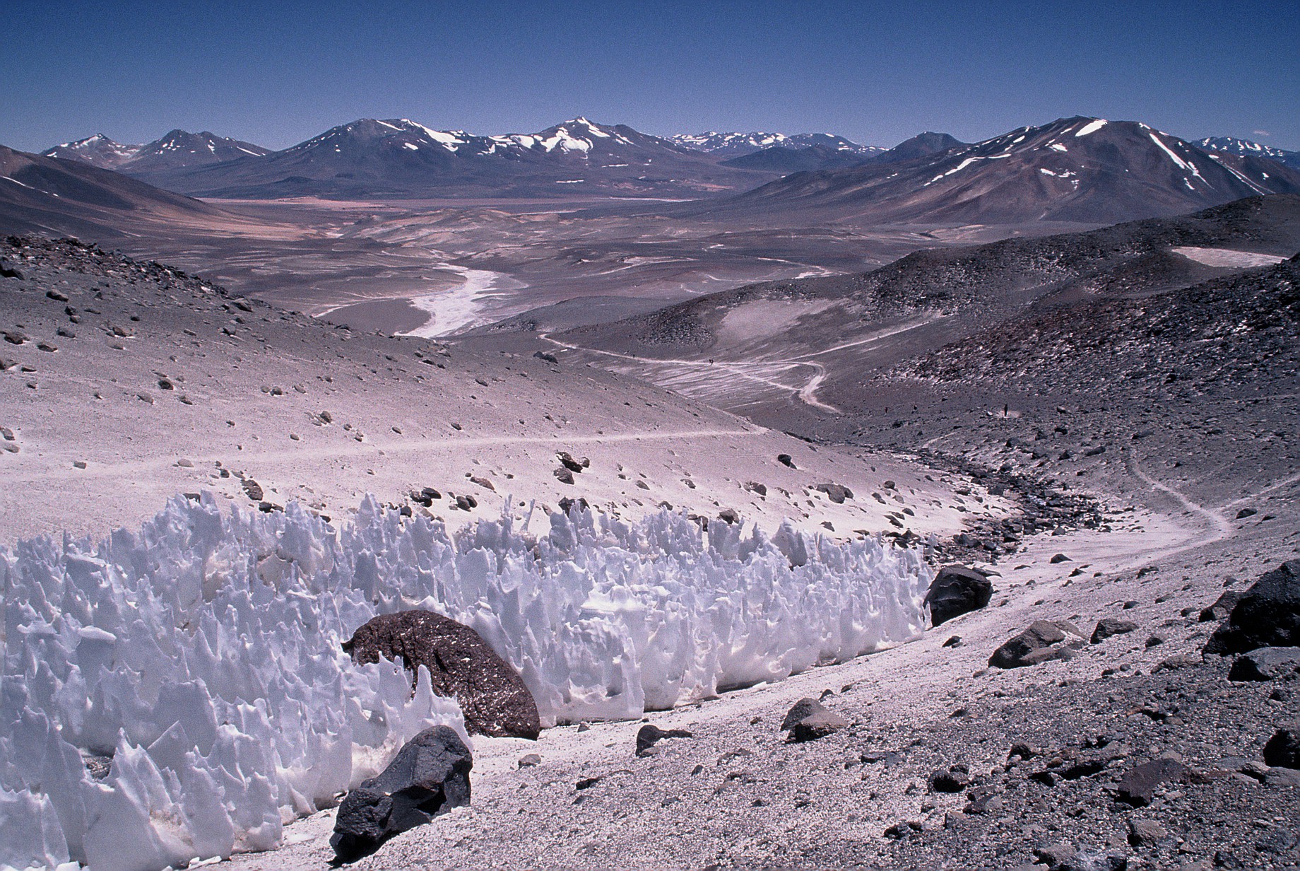 Pénitents à l’Ojos del Salados (Chili), véritables épées de glace