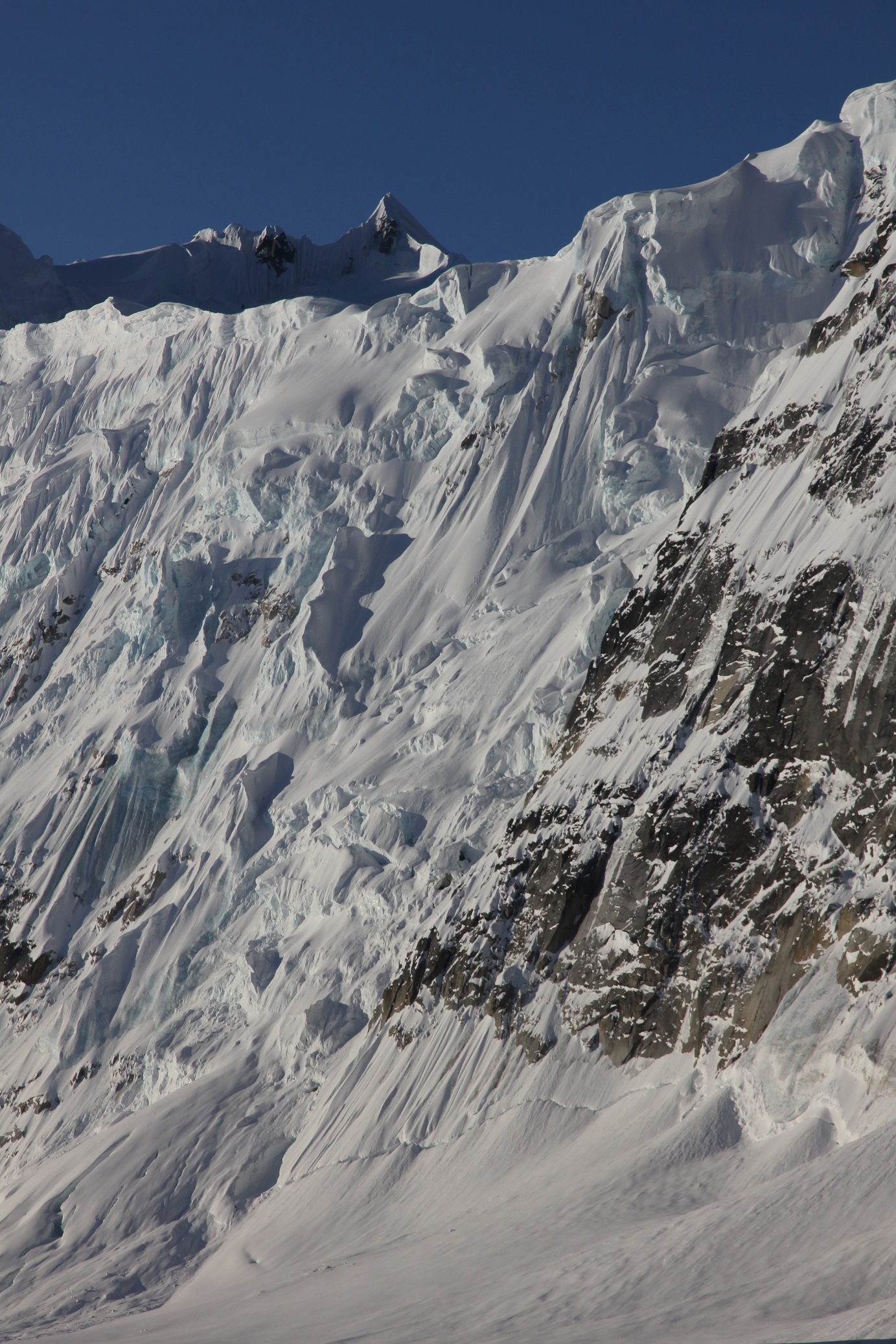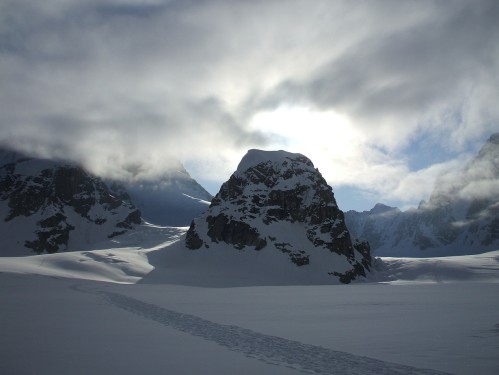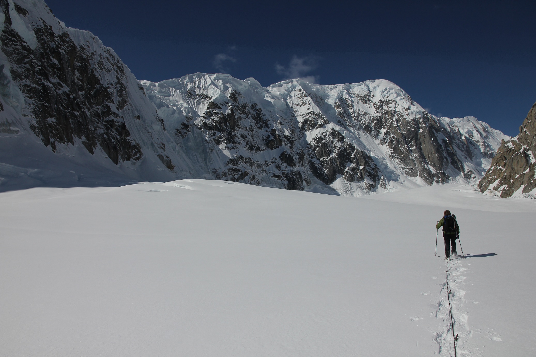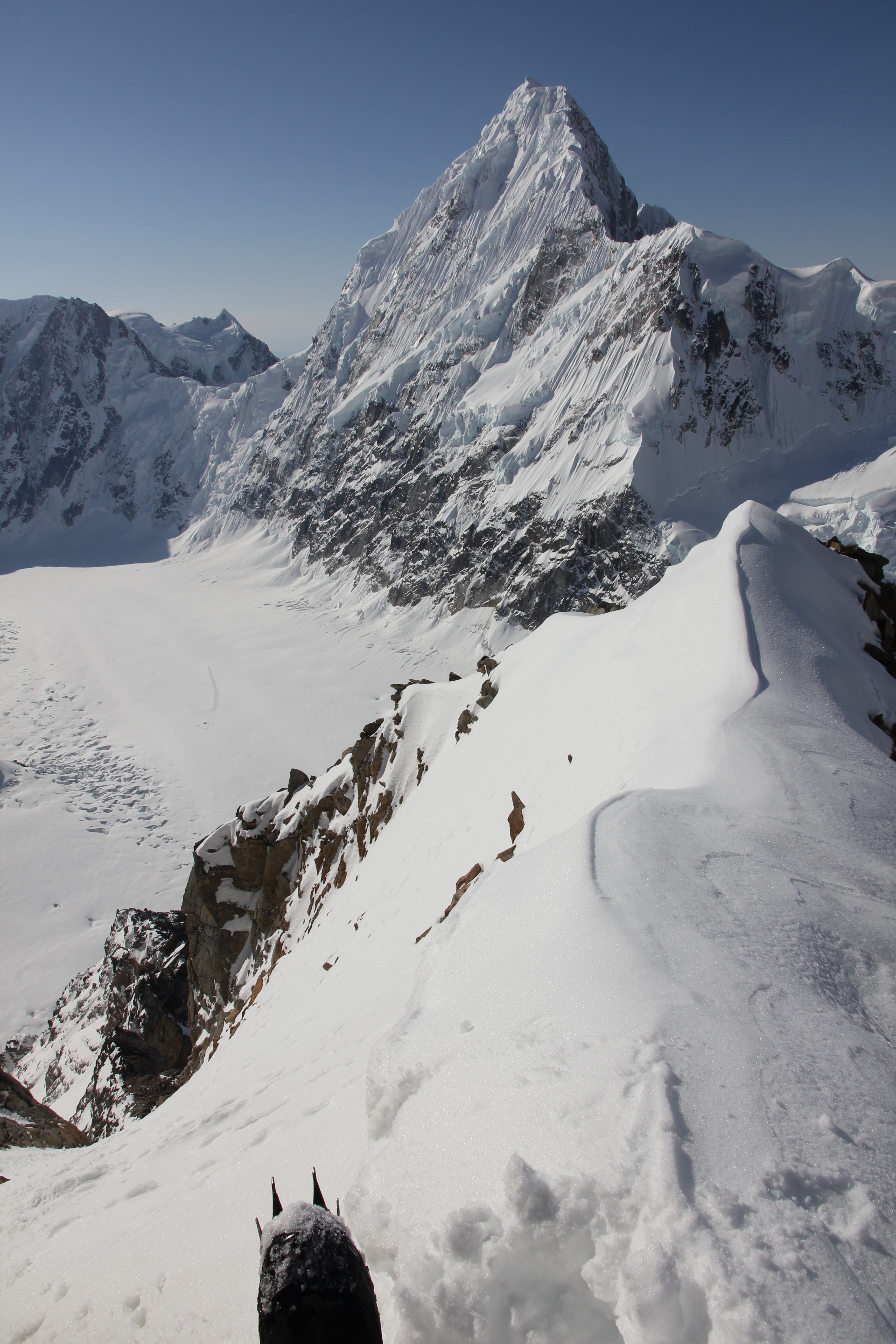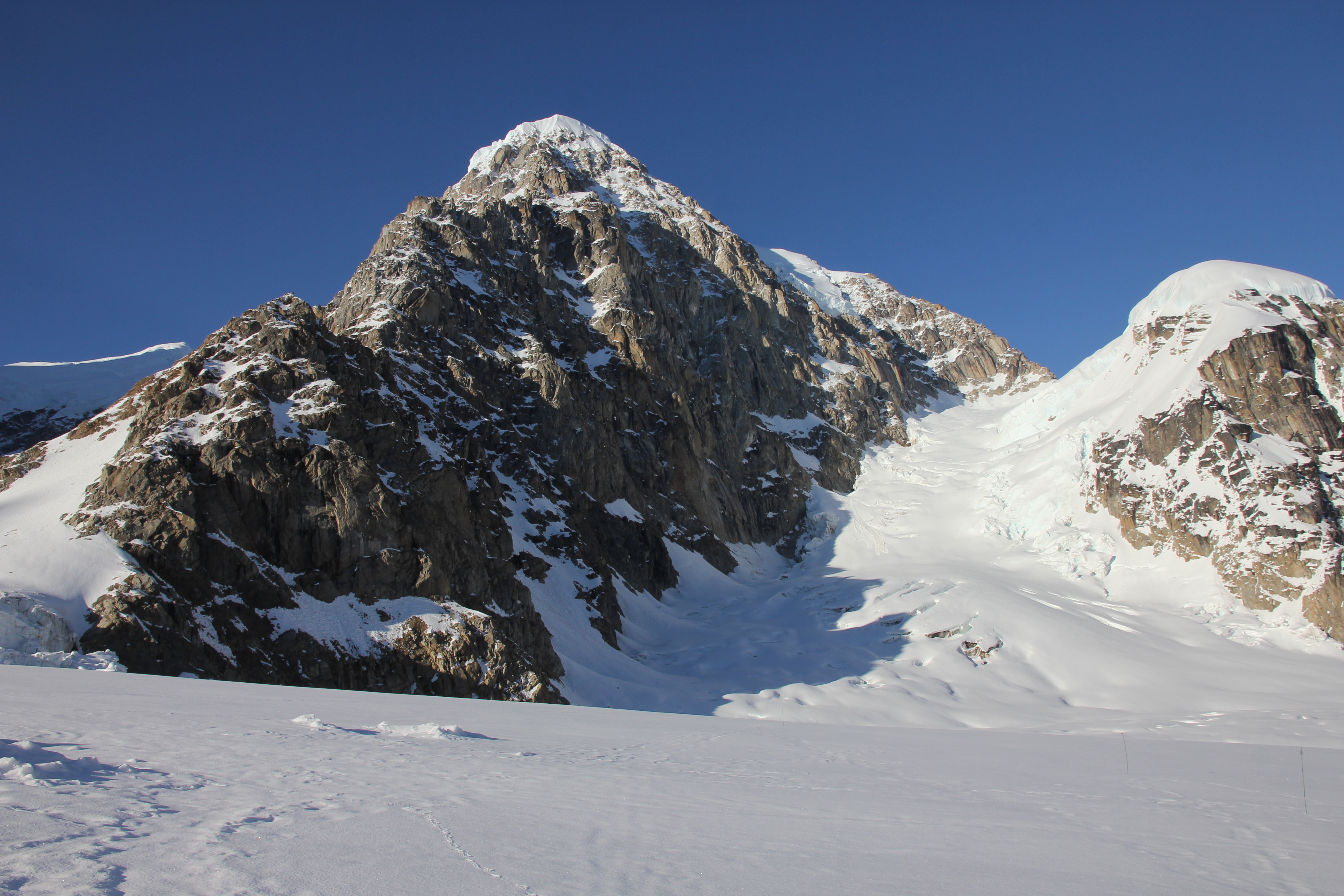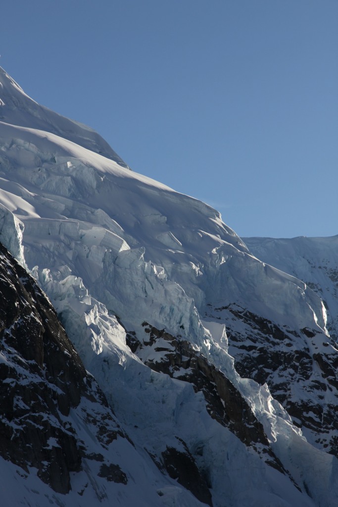 L’absence de conditions favorables pour les deux sommets envisagés initialement, le mont Huntington (accident la semaine précédente) et le mont Russell (accès à l’arête sommitale impraticable). Changement de programme, donc.