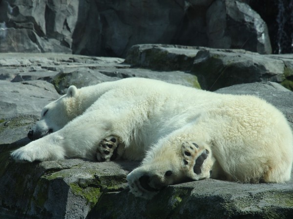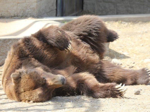Et voilà la star… bien malgré elle? L’ours ne fait pas honneur à ce statut en restant vautré sur le rocher..