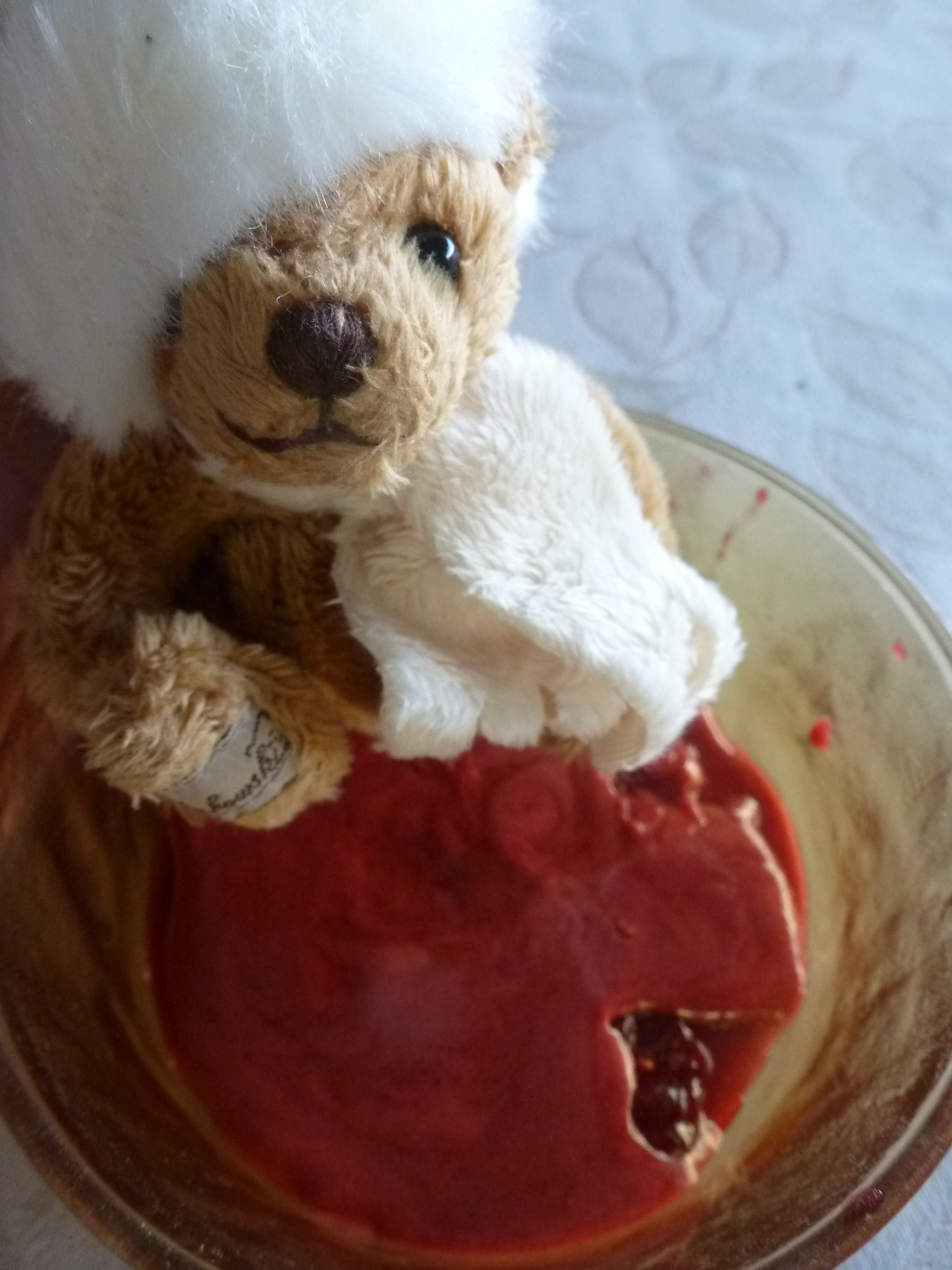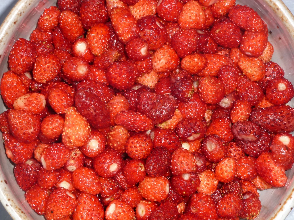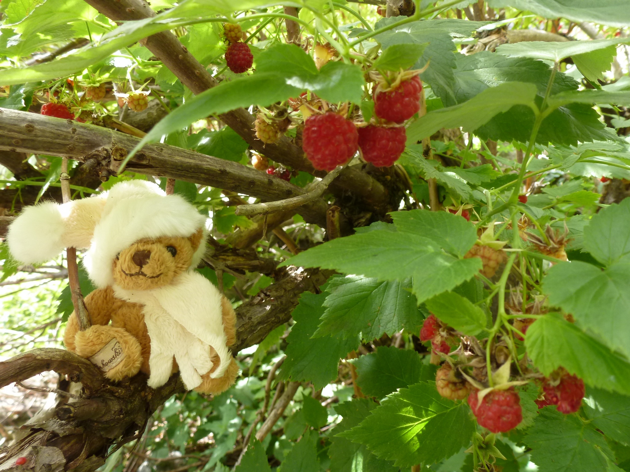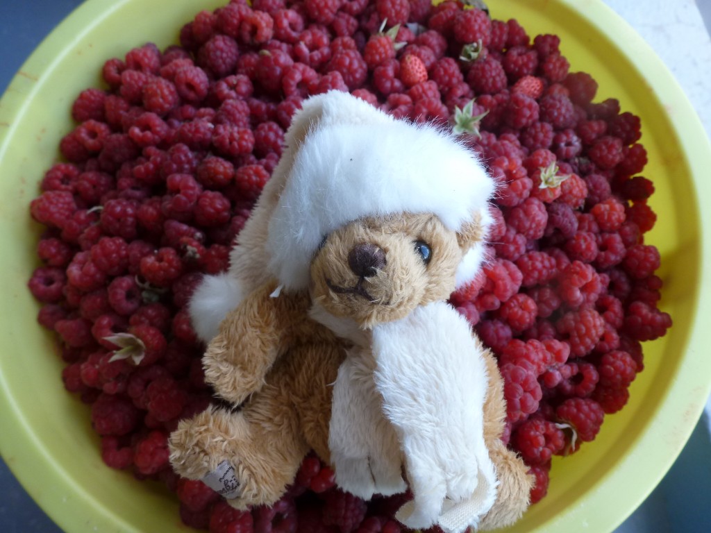 Les framboises ? La tradition familiale utilise un « passe-vite », sorte de moulin à légumes avec une grille très fine qui permet, après un énergique « moulinage », d’obtenir un jus (quasiment) sans grains. Les grains sont pressés dans un bas nylon pour récupérer un peu de jus supplémentaire (rien ne se perd!). Ensuite, ce jus est sucré puis passé à la sorbetière. Ou bien il peut être porté à ébullition lors d’une cuisson pendant laquelle la framboise libère un arôme incomparable qui se répand dans toute la maison. Il faut ensuite enlever « l’écume » à la surface de la confiture, sorte de mousse rose au parfum puissant qui peut agrémenter les tartines du petit déjeuner le lendemain. Il ne reste plus qu’à remplir les pots de confiture !