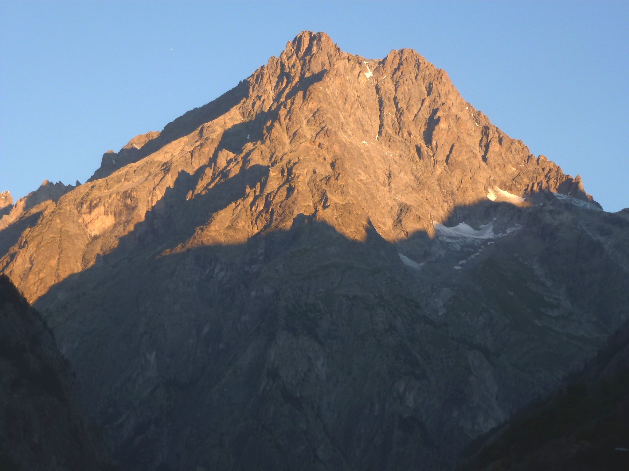 La face nord de la Meije en fin de journée, avec un « Z » semble-t-il en neige fin août, incroyable!