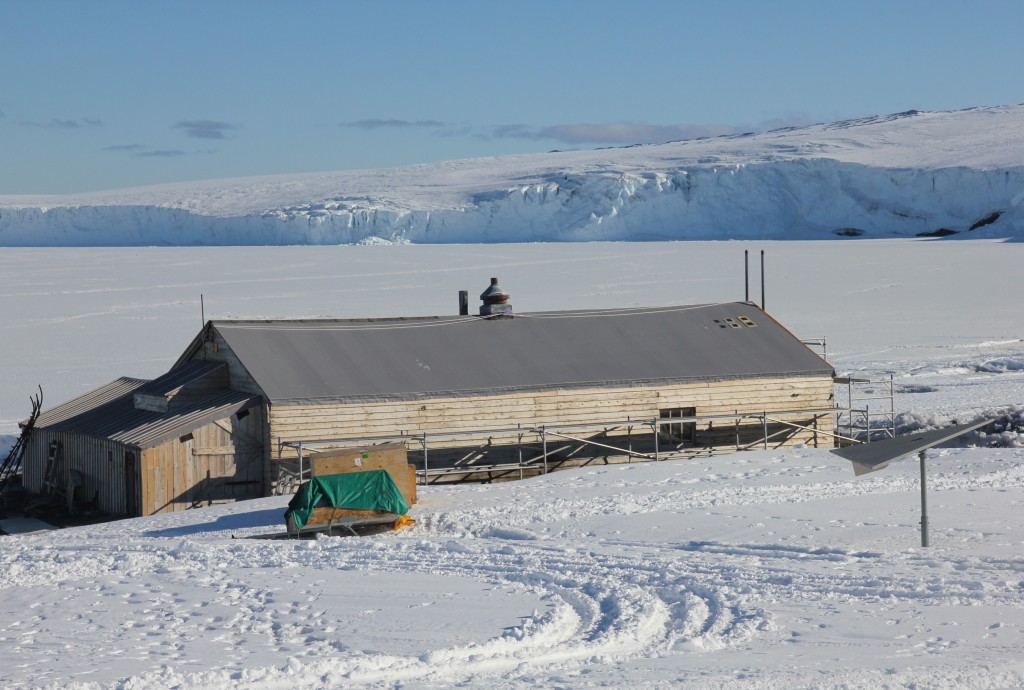 La cabane d’hivernage de Scott à Cape Evans, maintenue en état par le Antarctica Heritage Trust. L’hélicoptère n’est pas d’époque…