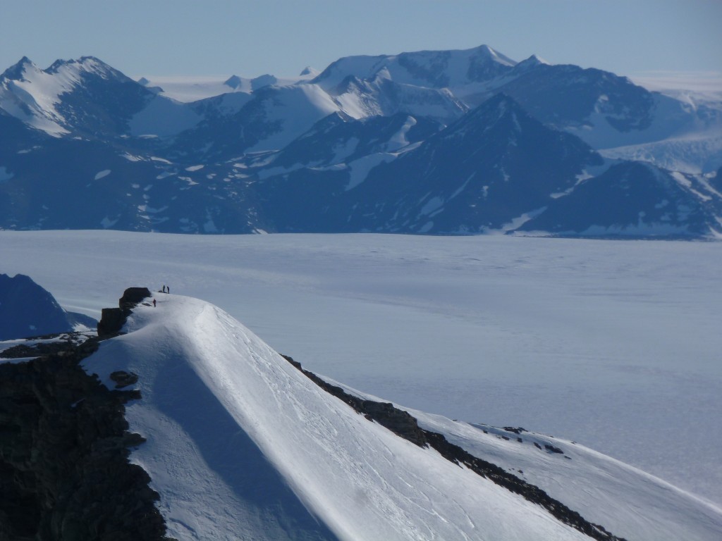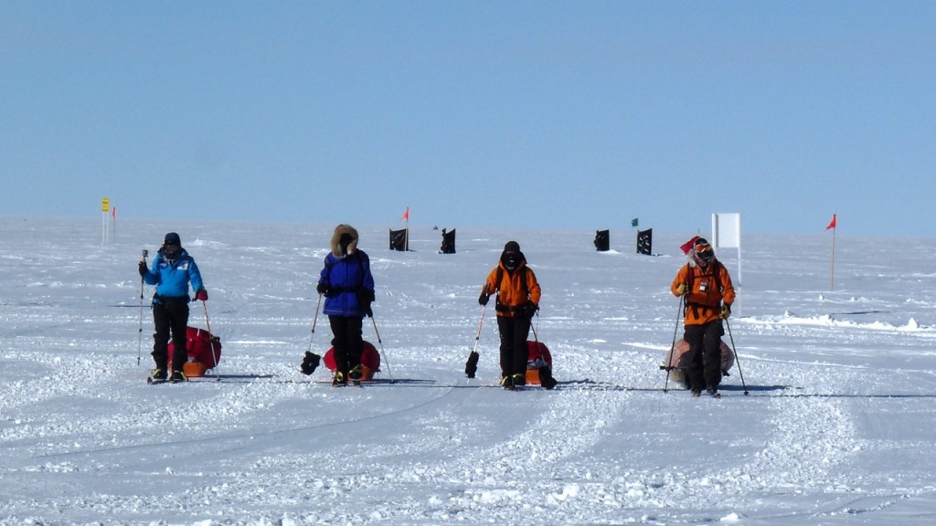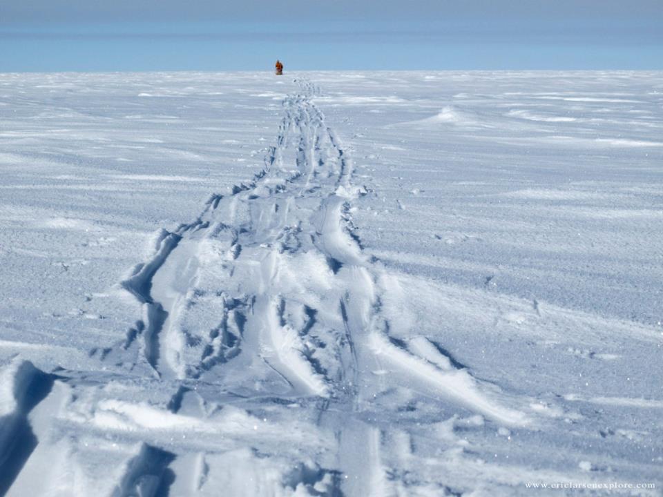Quelques jours plus tard, le calme et la sérénité étaient revenus au camp de Union Glacier. J’arrivai du Vinson pour retrouver deux co-expéditionnaires, Andrea et Carol, que la perspective de quelques jours de ski pour arriver au Pôle faisait également saliver. Eric Larsen allait nous guider lors de cette aventure et nous faire profiter de son expérience exceptionnelle (deux traversées complètes vers le pôle Nord, deux vers le pôle Sud et un Everest en prime).