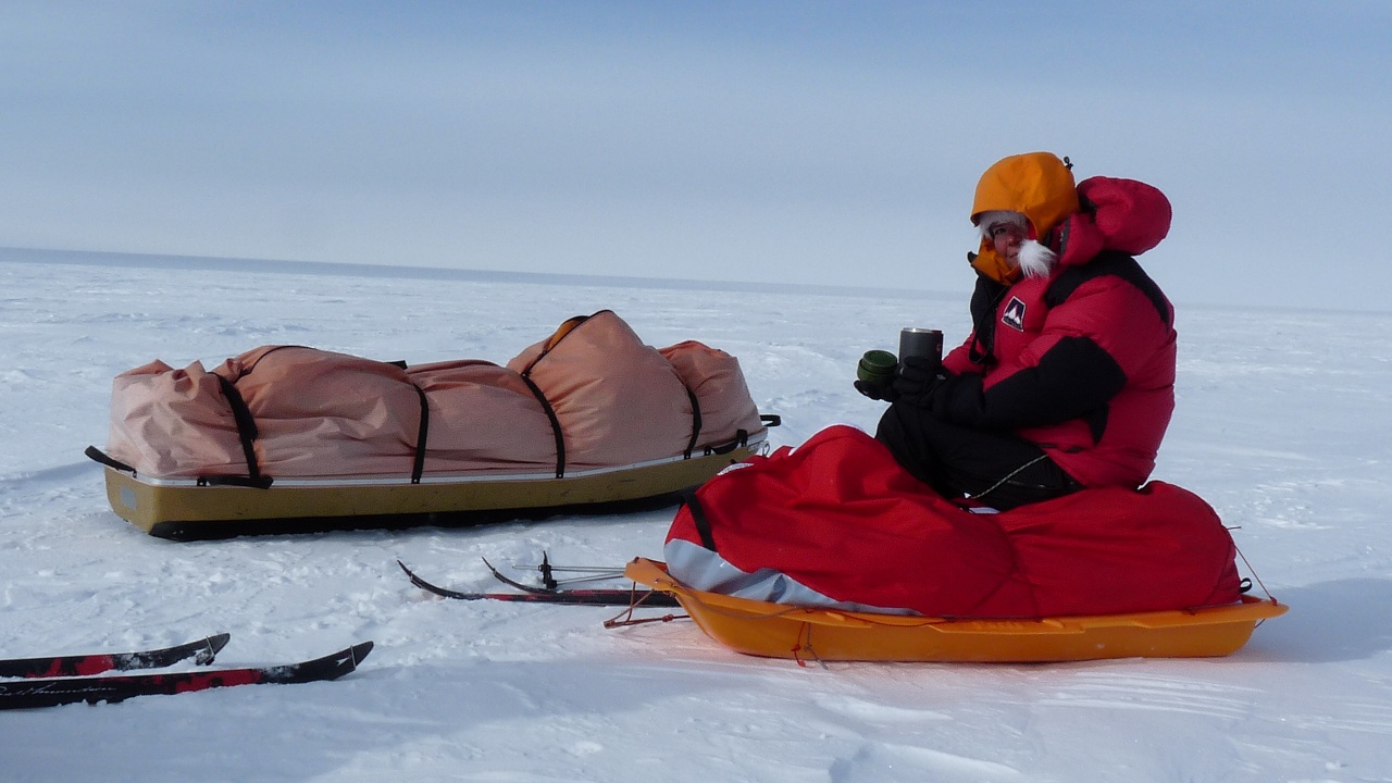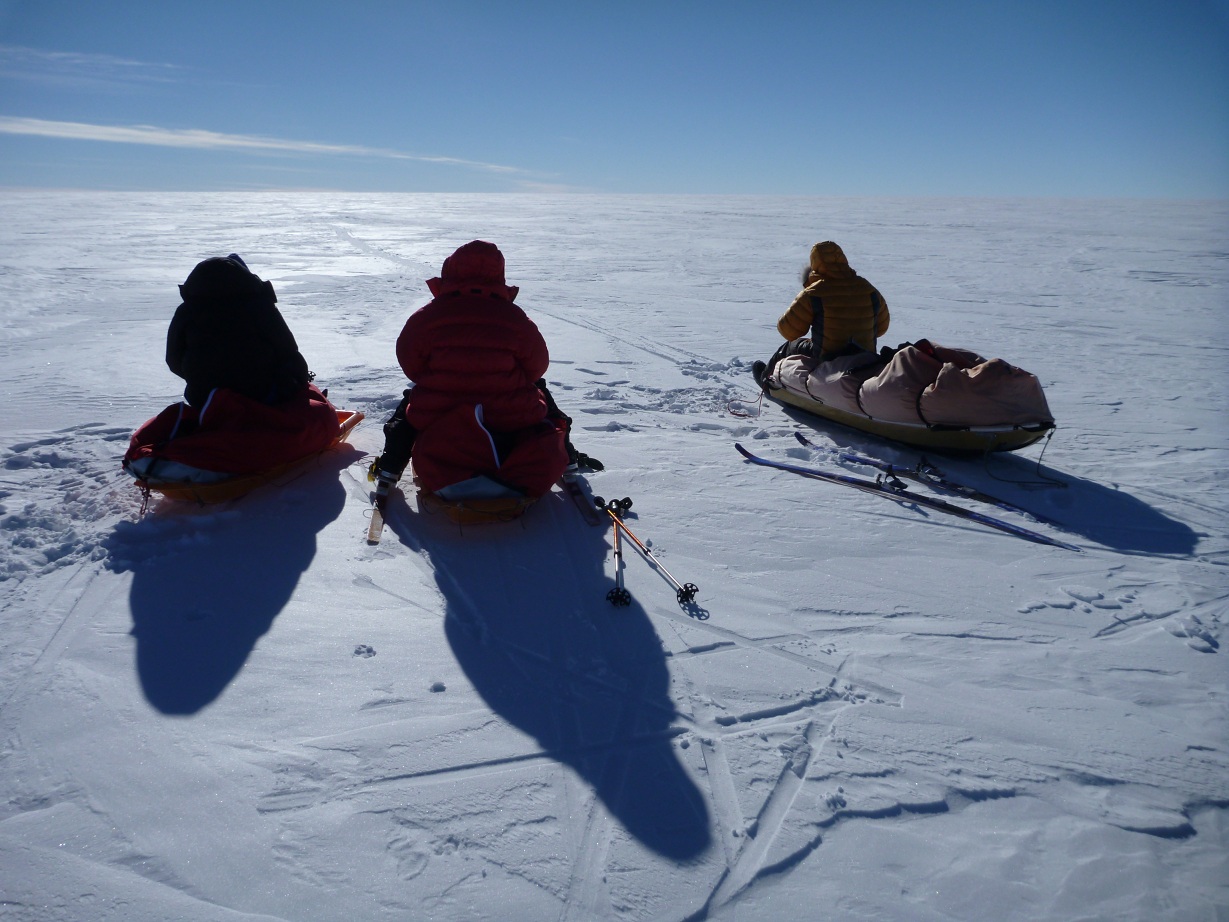 Entre chaque pause, les sessions de ski sont propices à l’observation du paysage, qui ne change pas vraiment comme nous approchons du pôle mais reste unique, ou à l’introspection. Certains passent en revue leur vie, d’autres imaginent quel sera le prochain projet…