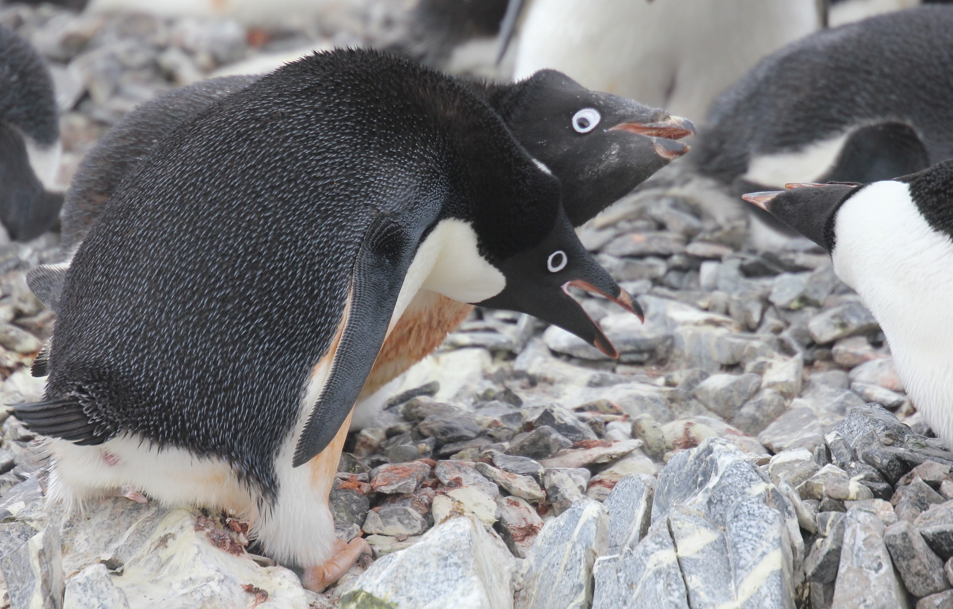 Étonnant ou non, le très sérieux British Antarctica Survey, qui publie d’excellents rapports scientifiques notamment sur la faune de la région, ne fait pas mention de ces comportements déviants dans le résultat de ses travaux effectués entre 1948 et 1951 dont on comprend que les manchots Adélie peuvent être infidèles, voleurs, agressifs, bruyants et démonstratifs mais semblent globalement pragmatiques et concentrés sur la tâche d’élever le(s) poussin(s).