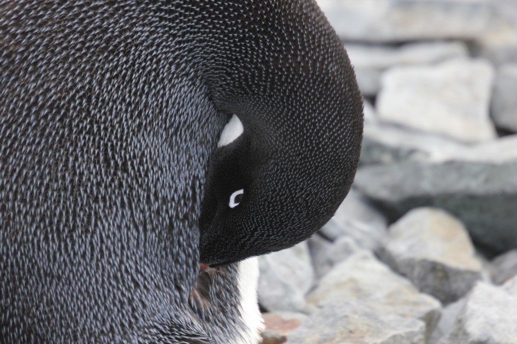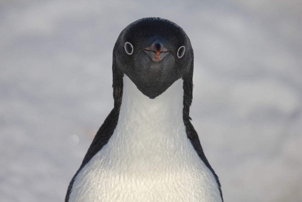 • Le manchot Adélie adopte souvent une posture extatique que les visiteurs ne manquent pas de noter :