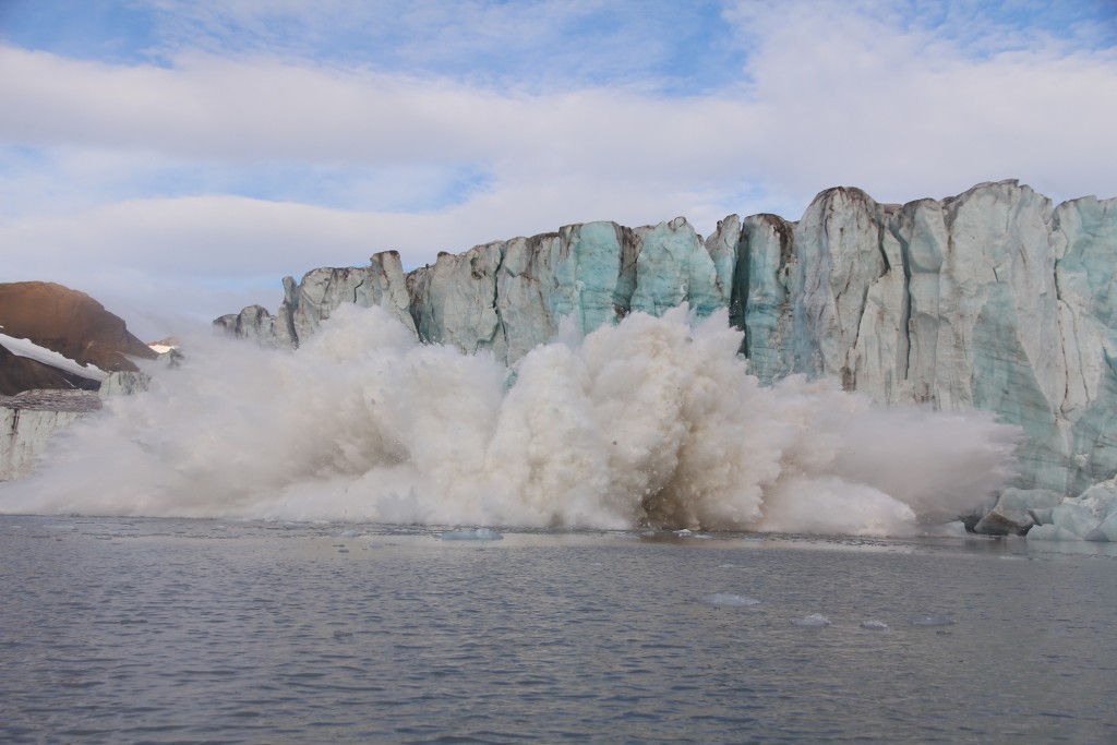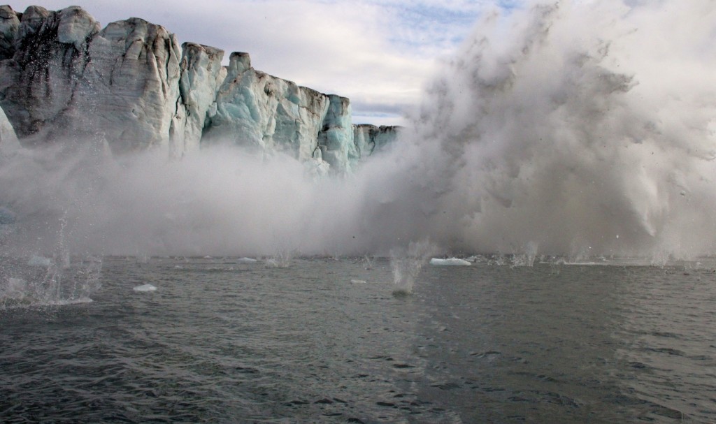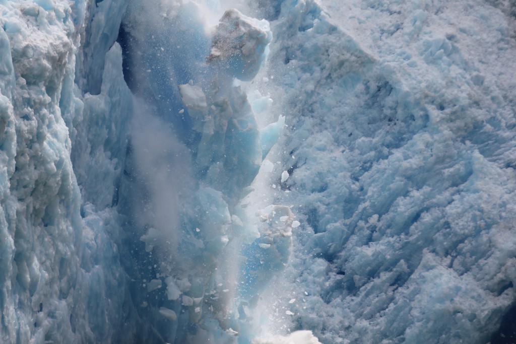 En Alaska, les glaciers sont actifs et vêlent fréquemment. Au Spitzberg, la réglementation impose de ne pas s’approcher à plus de 200 mètres. En tombant dans l’eau, la glace peut provoquer une grosse vague.