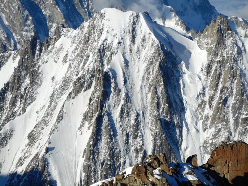Zoom sur les Grandes Jorasses avec la voie glaciaire du Linceul sur la partie gauche de la face (lire l’ascension en face Nord des Jorasses: LINCEUL (octobre 2006))