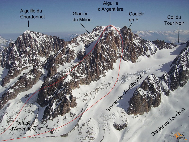 Couloir du Y à l’aiguille d’Argentière (3901 mètres, massif du Mont-Blanc)