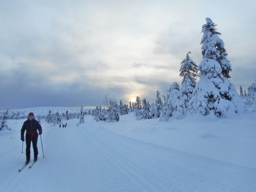 A observer les Norvégiens que l’on croise sur les pistes, le ski de fond se pratique de 3 à 80 ans. Très peu de style libre / skating (peut-être 10% des gens?), tout le monde à fond avec le style classique. Certains varient en se faisant tirer par leur chien (équipés d’élégants botillons!) mais globalement, on n’est pas là pour la promenade.