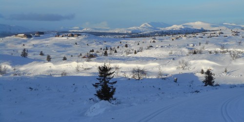 Sur les hauteurs de Hafjell, gagner le point de départ de Pellestova, visiblement un des ‘spots’ de la région. Un itinéraire globalement descendant et très peu fréquenté mène à Hornsjø, petit hameau de quelques maisons. Retour par une rive du lac Reinsvatnet (que l’on ne voit pas vraiment) et où l’on retrouve la foule des skieurs. Parcours de grands plateaux, à probablement éviter en cas de grand vent.
