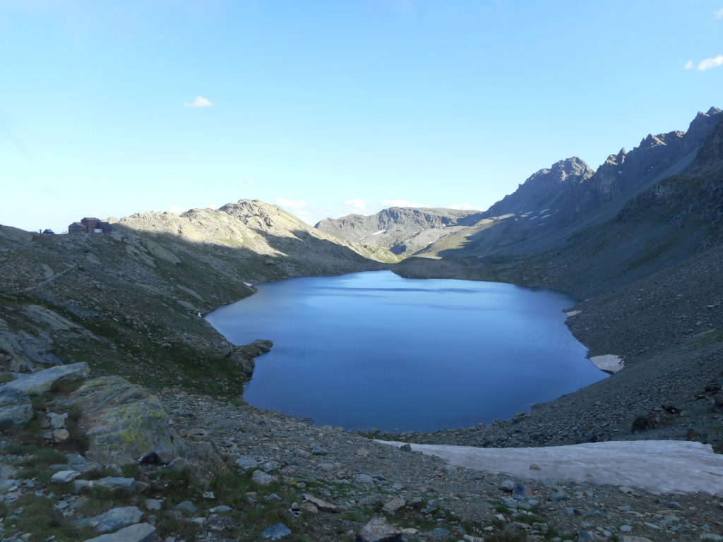 Deux bonnes heures de montée tranquille permettent de rejoindre le refuge Q. Sella, au bord d’un lac.