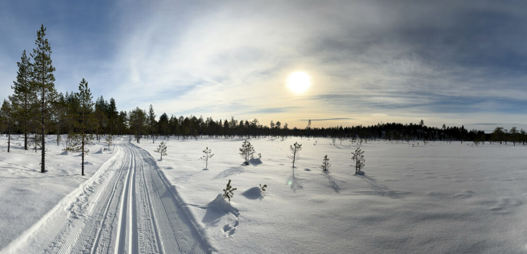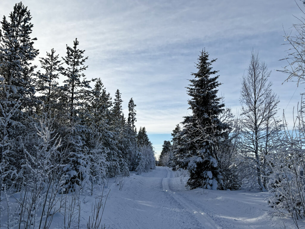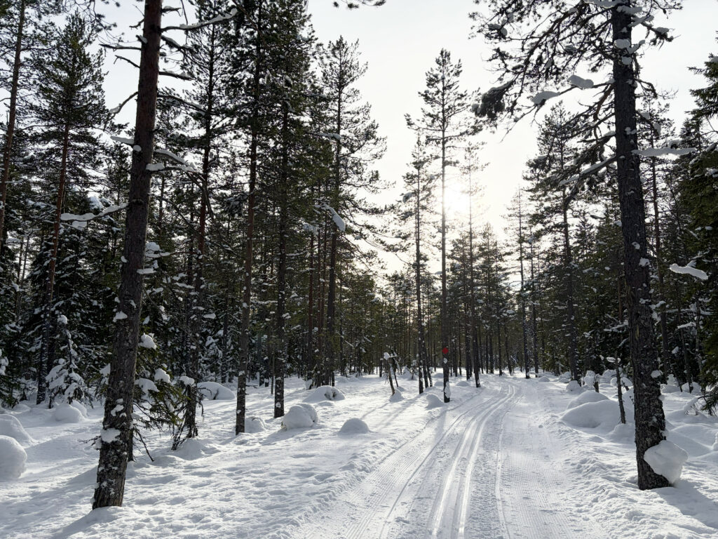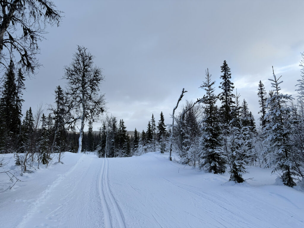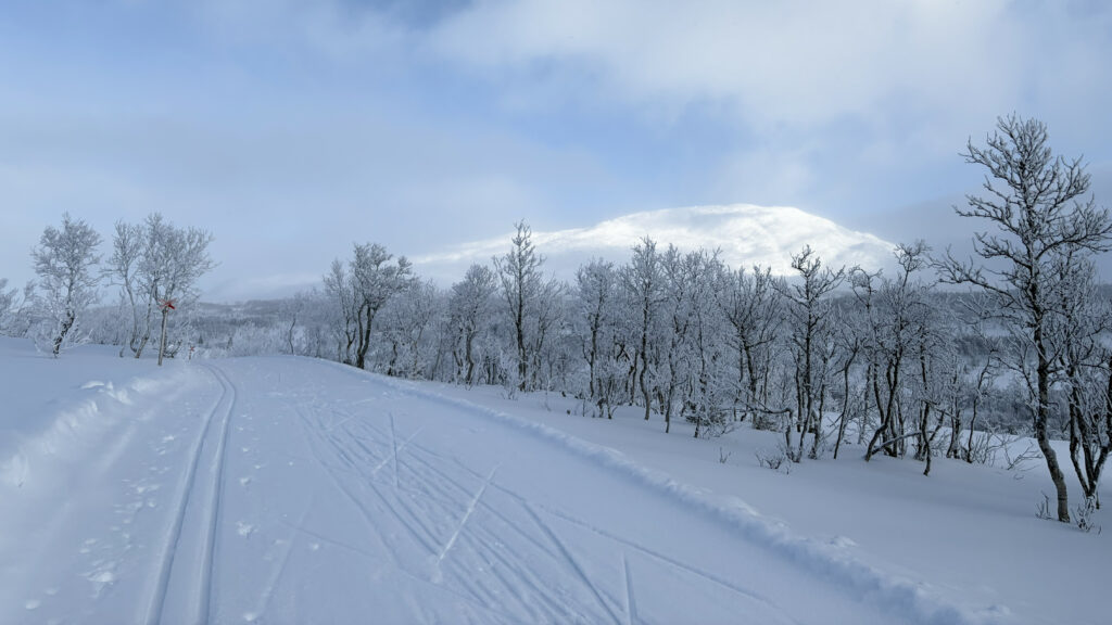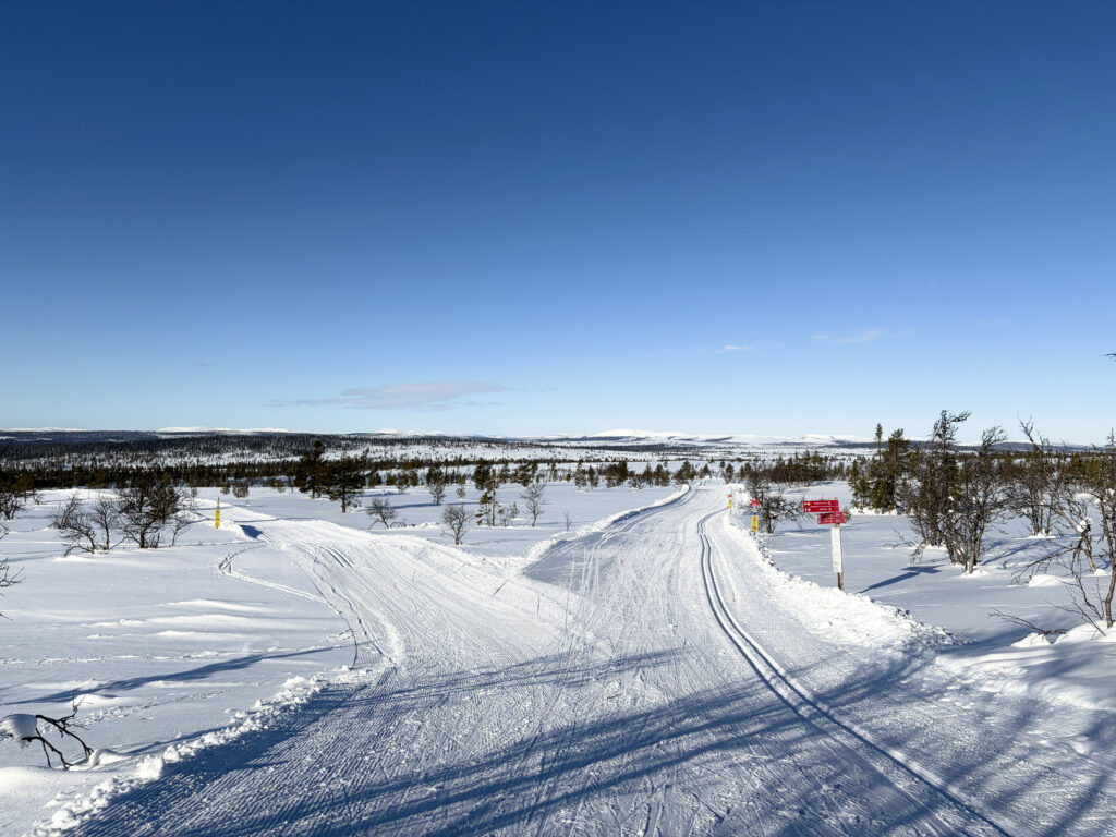 Une très belle piste, à l’écart des motoneiges, fait le tour de la colline: Slattvalasparet.