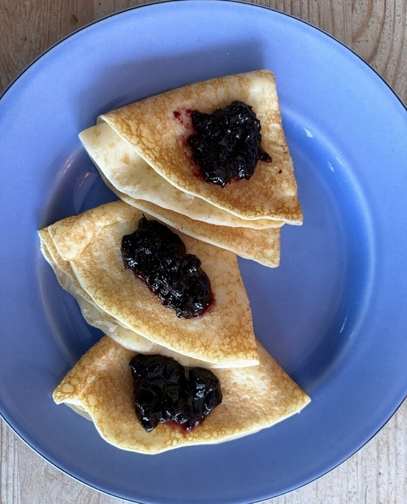 Les crêpes (sans gluten) à la célèbre confiture de myrtilles