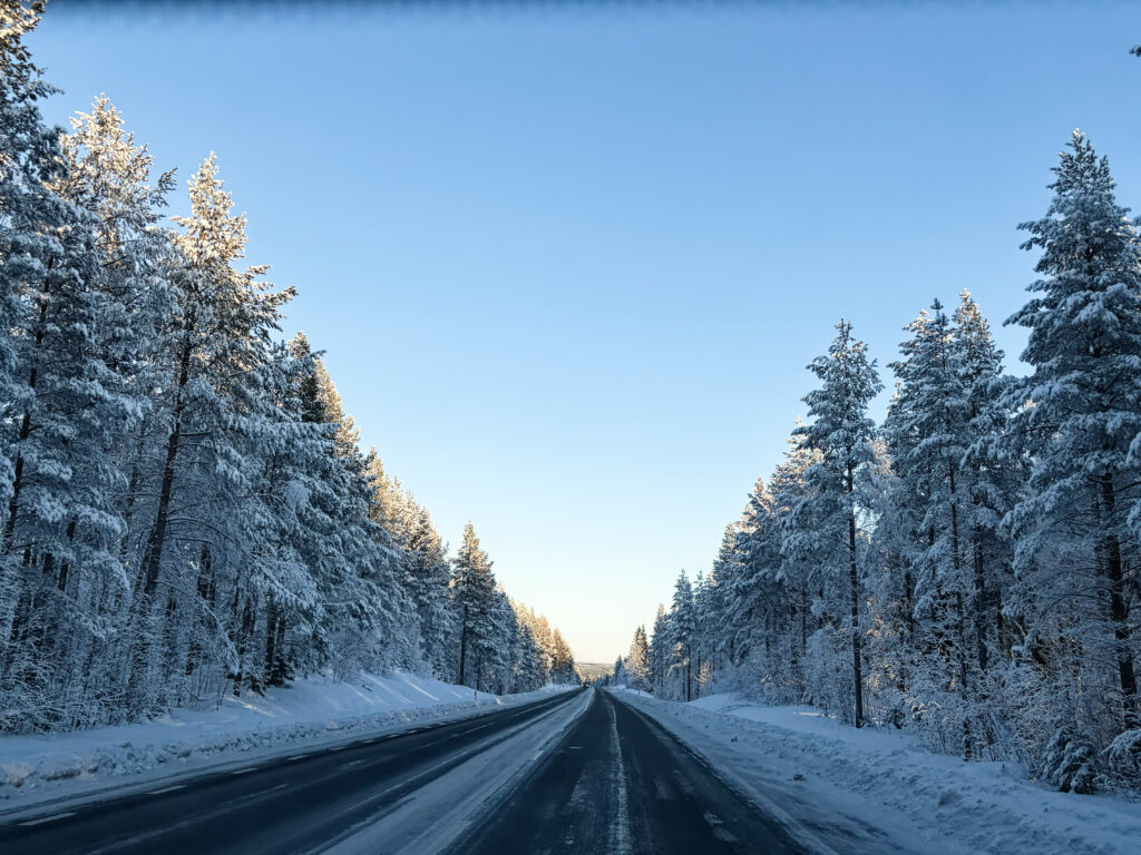 Les routes sont extrêmement glissantes, telles des patinoires. La plupart des voitures sont équipées de pneus à clous. Les piétons devraient également s’équiper de crampons puisque les rues des villes et villages sont tout aussi glissantes, ce qui nous a valu quelques chutes et de jolis bleus.