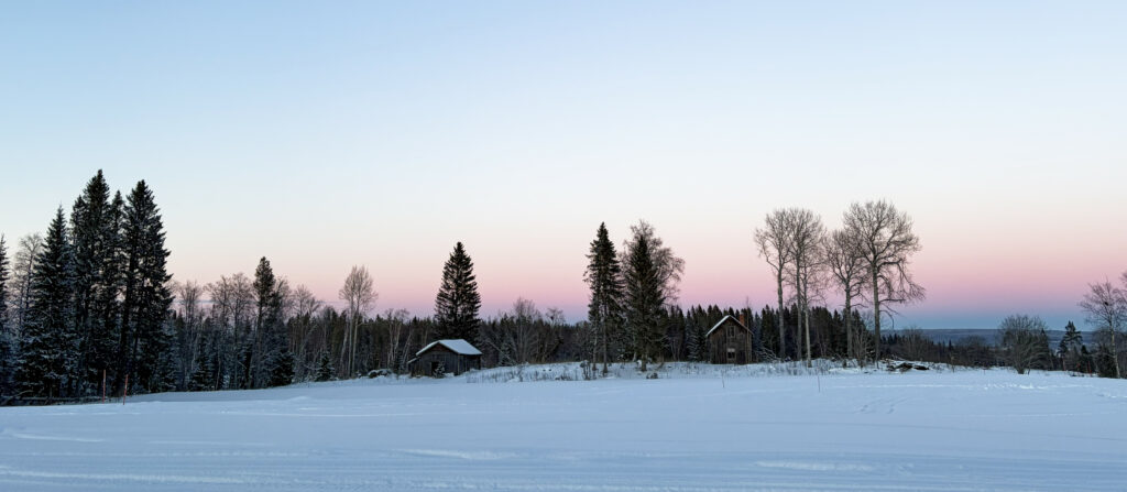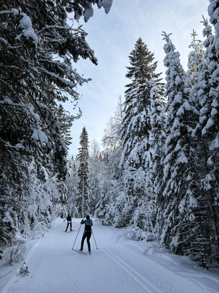 Le centre de la Suède mi-février, c’est 8 à 9 heures de jour avec des températures qui peuvent être polaires: nous avons eu jusqu’à -23°, avec une dizaine de jours entre -15 et -20°. Pas idéal pour pratiquer le ski de fond, où on aime avoir la bouche ouverte non couverte pour respirer convenablement et où la transpiration inhérente à l’effort suppose de ne pas trop se couvrir… Le règlement de compétitions officielles prévoit l’annulation des épreuves à partir de -17°, nous sommes donc vraiment dans une zone difficile. La solution peut être de diminuer l’intensité et la longueur des sorties.