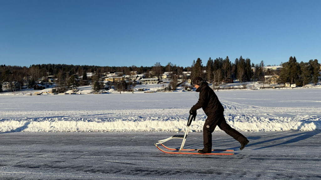 Ostersund est construite sur les bords du lac Storjön qui gèle en hiver, permettant l’ouverture d’une piste de patinage. Les résidents y pratiquent le patin à glace, mais aussi le « sledding », sorte de déambulateur sur patins, très pratique pour garder son équilibre ou pour véhiculer les enfants!