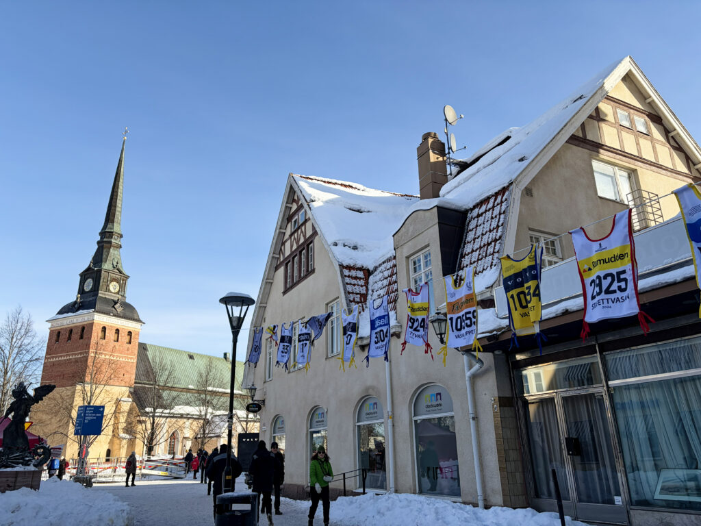 Cette course se passe le lundi précédant la Vasaloppet et en emprunte les 30 derniers kilomètres, au départ d’Oxberg. Nous sommes arrivés deux jours avant pour quelques repérages. Les embouteillages dans Mora, le salon des exposants, le service de fartage des skis, le retrait du dossard et la visite du stade de départ de la Vasaloppet à Sälen nous ont mis dans l’ambiance! L’hôtel se met d’ailleurs au diapason en proposant des petits déjeuners dès 3h du matin pour permettre aux skieurs des distances les plus longues de se rendre sereinement au départ… Tous les clients sont des participants aux courses de la semaine de la Vasaloppet!