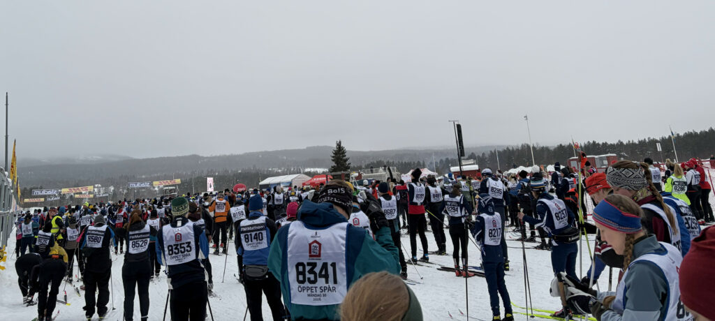La course Oppet Spar Monday est ouverte aux skieurs en classique comme en skating, ce qui complique la progression sur une piste qu’on voudrait plus large. Il y avait environ 900 inscrits sur la distance de 30km en 2026, auxquels s’ajoutent les plus rapides de la Oppet Spar Monday 45, qui commencent 30 minutes avant sur une boucle de 15km avant de rejoindre le parcours de Vasaloppet. Il y a donc encombrement par endroits mais bon, après 15 à 20km, c’est plus gérable.